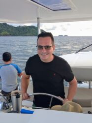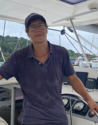 Second Captain Jean-Christophe “JC”, born in Brittany, started sailing at age 7 and served in the French Navy. He has sailed multihulls and monohulls across the Atlantic and the Caribbean. A true polyglot, he speaks French, Spanish, English, Portuguese, Mandarin, and Cantonese.